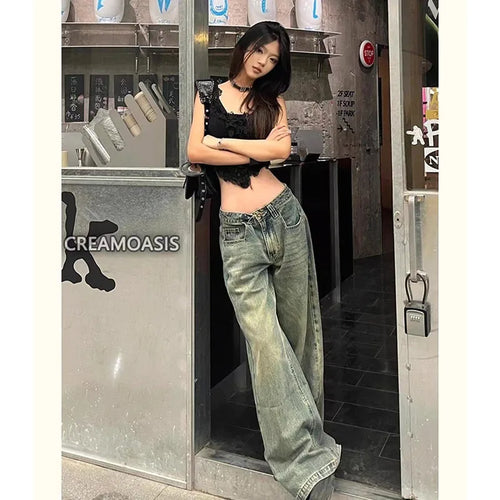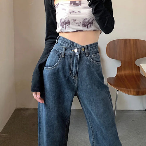 Blue Women's Jeans Hip-hop Fashion Vintage Streetwear Y2K Wide Leg Straight Jean High Waist Trouser Classic Baggy Denim Pants